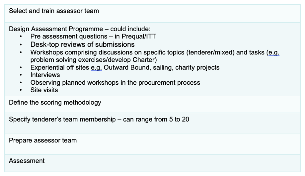 JCP can conduct the whole assessment process jointly with the client, and can also support proponent teams to enhance their collaborative culture and individual behaviours in readiness for a CBA.