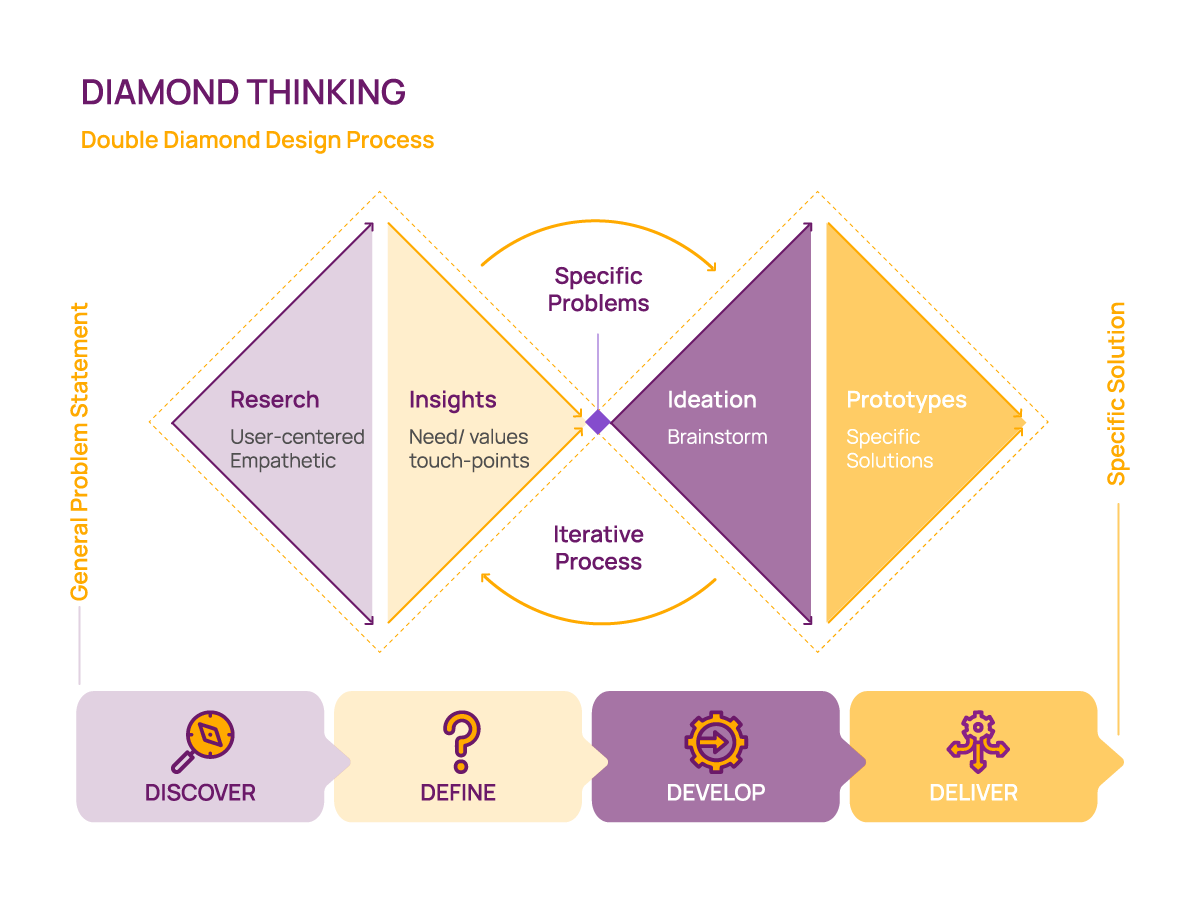 4. Deliver: Create simple, tangible versions of your ideas: prototyping e.g. mock-ups, sketches, or models. Try out your prototypes with real users, gather feedback, and refine.